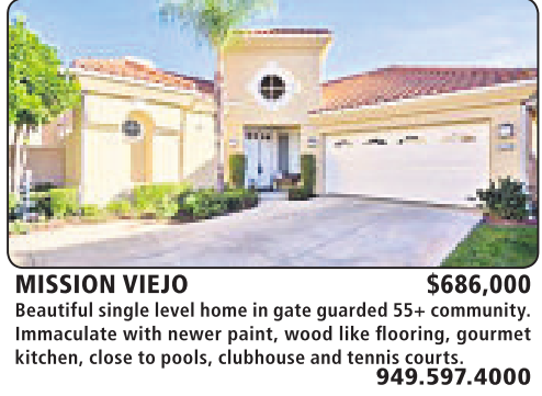 MISSION VIEJO $686,000 Beautiful single level home in gate guarded 55+ community.