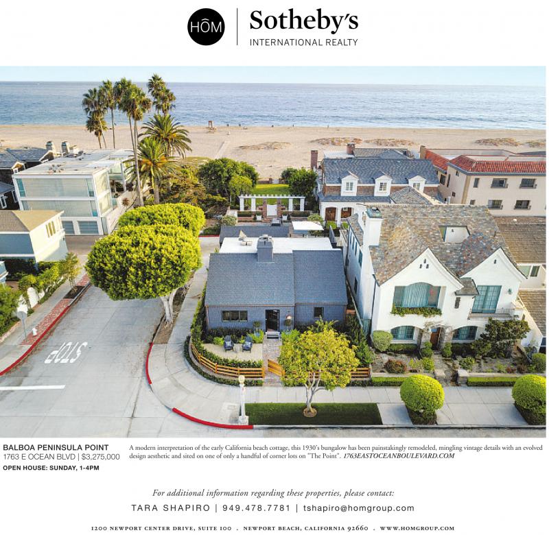 BALBOA PENINSULA POINT 1763 E OCEAN BLVD | $3,275,000 Amoderninterpretation of the early California beach cottage, this1930’sbungalowhas been painstakinglyremodeled, mingling vintage detailswith an evolved design aesthetic and sited on one of only a handful of corner lots on "The Point". 1763EASTOCEANBOULEVARD.COM OPEN HOUSE: SUNDAY, 1-4PM For additional information regarding these properties, please contact: TA R A S H A PI R O | 9 4 9. 478 .7 781 | tshapiro@homgroup.com 1200 newport center drive, suite 100 . newport beach, california 92660 . www.homgroup.com