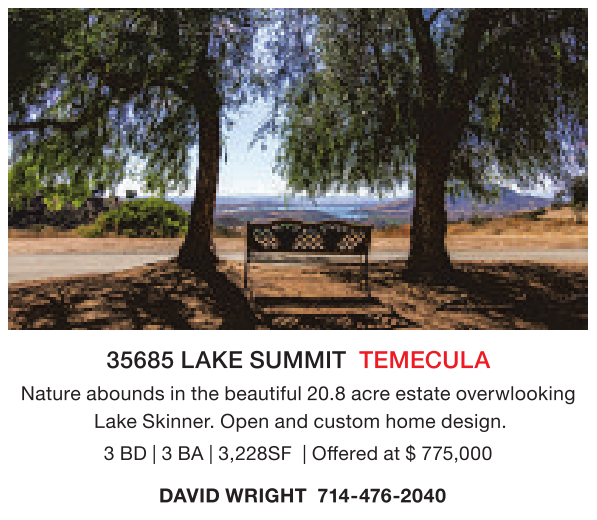 Nature abounds in the beautiful 20.8 acre estate overwlooking Lake Skinner. Open and custom home design.