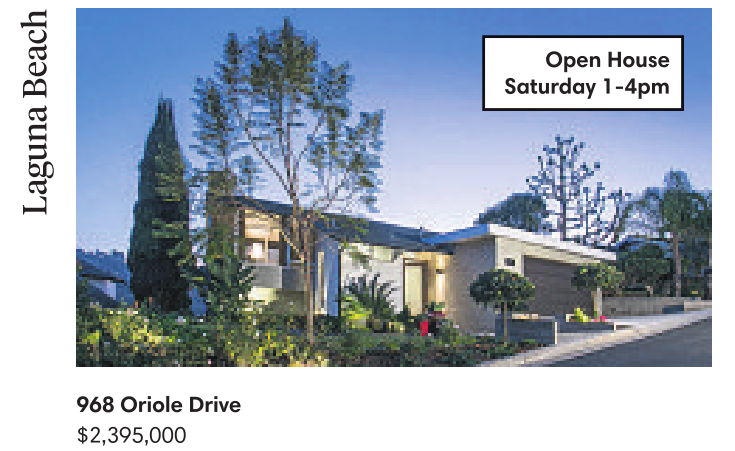Page 29 Loading... Tips: Click on articles from page More news at Page 29OPEN SAT/SUN 1-4 REDUCEDZELLDRIVE|$2,695,000 3 BED/2 1/2 BATH | Top of the WorldSUNVALLEYDRIVE|$1,195,000 3 BED/2 BATH | Laguna CanyonLARGE LOTSANREMODRIVE |$2,195,000 2 BED/2 1/2 BATH | Temple HillsTEMPLE HILLSDRIVE |$2,195,000 3 BED/3BATH | Temple HillsSEPARATE UNITSAINT ANNS DRIVE|$1,575,000 2 BED/2 BATH | Laguna Village |