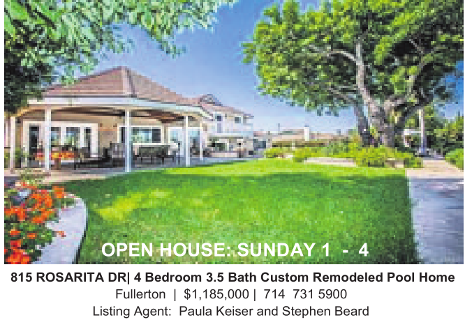 815 ROSARITA DR| 4Bedroom 3.5 Bath Custom Remodeled Pool Home Fullerton | $1,185,000 | 714 731 5900 Listing Agent: Paula Keiser and Stephen Beard