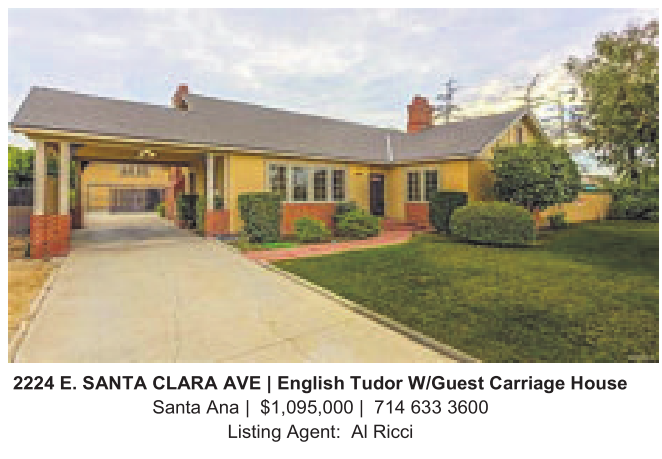 2224 E. SANTA CLARA AVE |English Tudor W/Guest Carriage House Santa Ana | $1,095,000 | 714 633 3600 Listing Agent: AlRicci