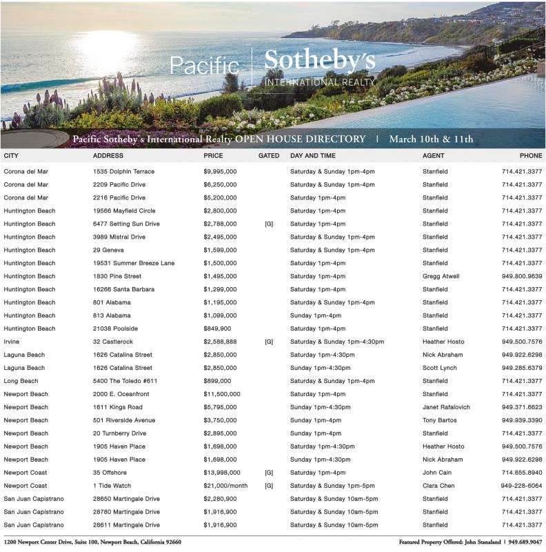 Pacific Sotheby's International Realty OPEN HOUSE DIRECTORY | March 10th & 11th