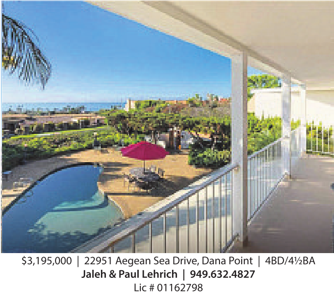 $3,195,000 | 22951 Aegean SeaDrive,Dana Point | 4BD/4½BA Jaleh &Paul Lehrich | 949.632.4827 Lic #01162798