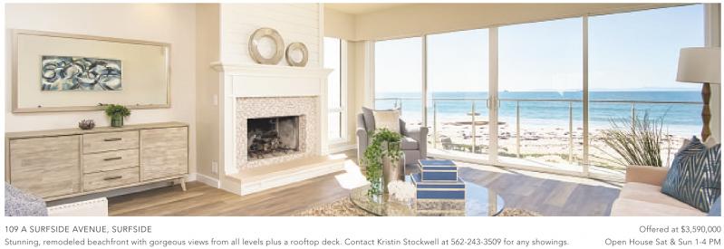 Stunning, remodeled beachfront with gorgeous views from all levels plus a rooftop deck. Contact Kristin Stockwell at 562-243-3509 for any showings.