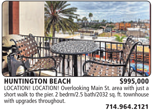 HUNTINGTON BEACH $995,000 LOCATION! LOCATION! Overlooking Main St. area with just a short walk to the pier.2bedrm/2.5 bath/2032 sq. ft. townhouse with upgrades throughout.