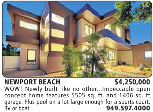 NEWPORT BEACH $4,250,000 WOW! Newly built like no other...Impeccable open concept home features 5505 sq. ft. and 1406 sq. ft garage. Plus pool on a lot large enough for a sports court, RV or boat. 949.597.4000