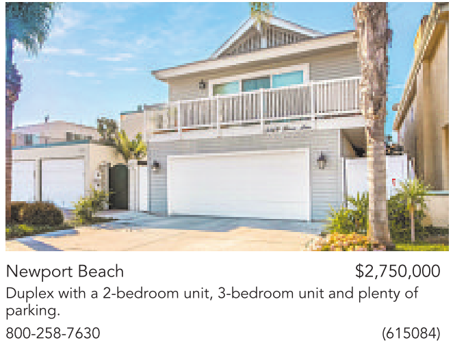 Newport Beach $2,750,000 Duplex with a 2-bedroom unit, 3-bedroom unit and plenty of parking.