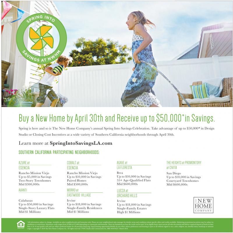 Spring is here and so is The New Home Company’s annual Spring Into Savings Celebration. Take advantage of up to $50,000* in Design