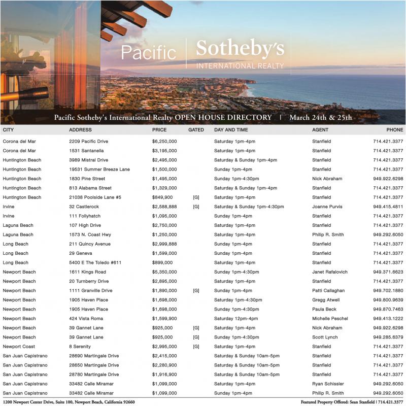 Pacific Sotheby's International Realty OPEN HOUSE DIRECTORY | March 24th & 25th