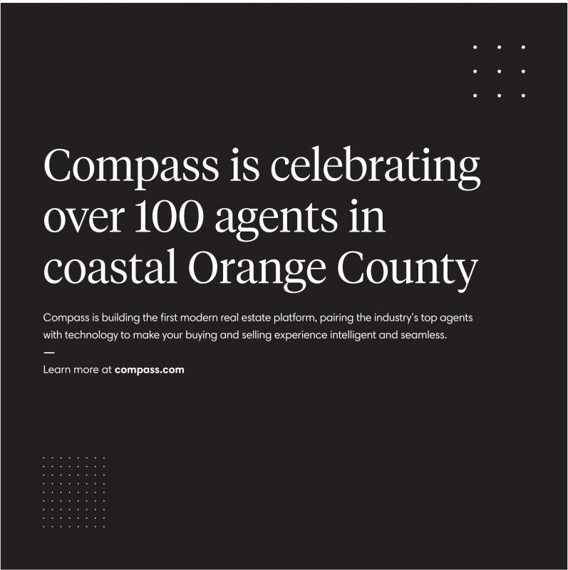 Compass is celebrating over 100 agents in coastal Orange County Compass is building the first modern real estate platform, pairing the industry’s top agents with technology to make your buying and selling experience intelligent and seamless. — Learn more at compass.com
