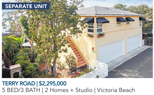 TERRYROAD|$2,295,000 5 BED/3 BATH | 2 Homes + Studio | Victoria Beach
