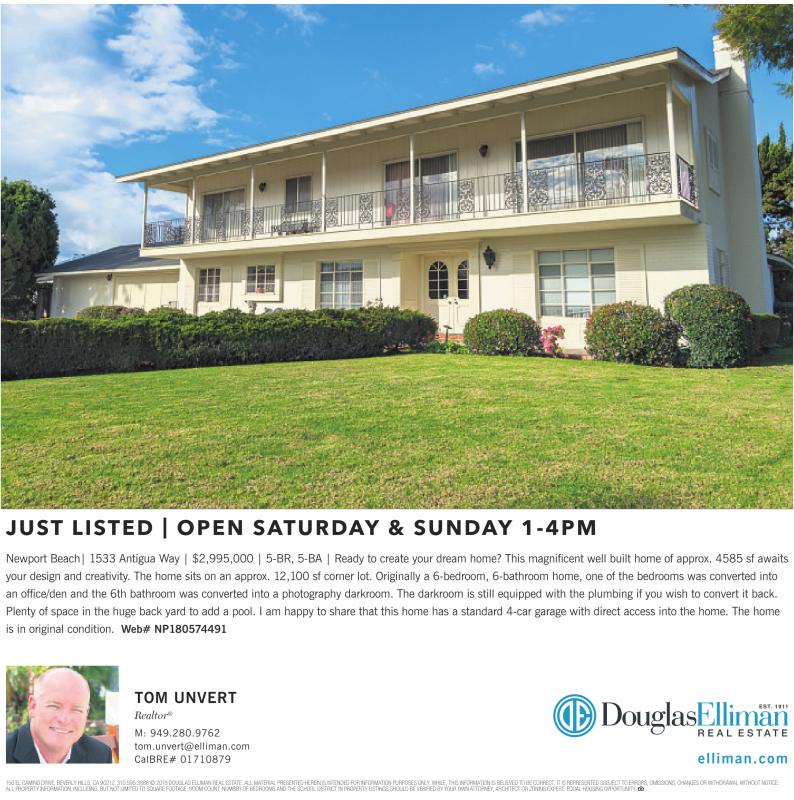Realtor ® M: 949.280.9762 tom.unvert@elliman.com CalBRE# 01710879
