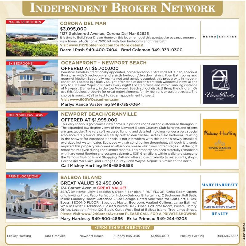 Mickey Hartling 1051 Granville Newport Beach Sunday 1:45-4:45 $1,995,000 Mickey Hartling 949.683.5553