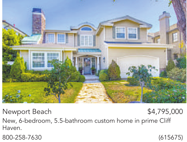 Newport Beach $4,795,000 New, 6-bedroom, 5.5-bathroom custom home in prime Cliff Haven.