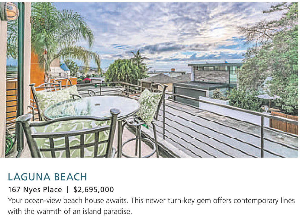 167 Nyes Place | $2,695,000 Your ocean-view beach house awaits. This newer turn-key gem offers contemporary lines with the warmth of an island paradise.