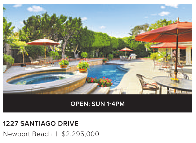 OPEN: SUN 1-4PM 1227 SANTIAGO DRIVE Newport Beach | $2,295,000 See also