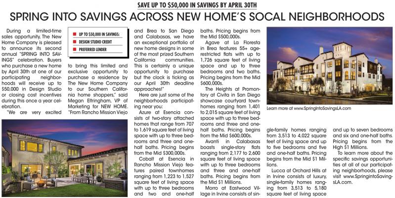 SPRING INTO SAVINGS ACROSS NEW HOME’S SOCAL NEIGHBORHOODS