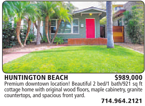 HUNTINGTON BEACH $989,000 Premium downtown location! Beautiful 2bed/1 bath/921 sq ft cottage home with original wood floors,maple cabinetry,granite countertops, and spacious front yard.