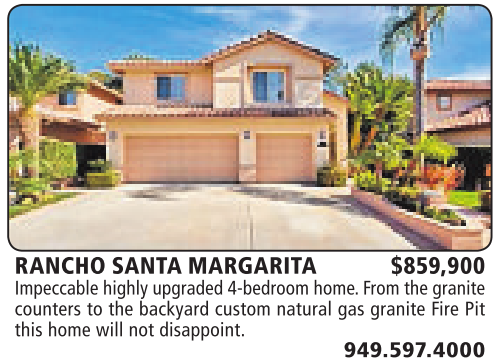 RANCHO SANTA MARGARITA $859,900 Impeccable highly upgraded4-bedroom home.From the granite counters to the backyard custom natural gas granite Fire Pit this home will not disappoint.