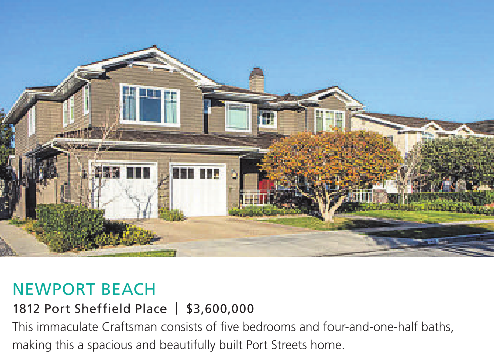 1812 Port Sheffield Place | $3,600,000 This immaculate Craftsman consists of five bedrooms and four-and-one-half baths, making this a spacious and beautifully built Port Streets home.