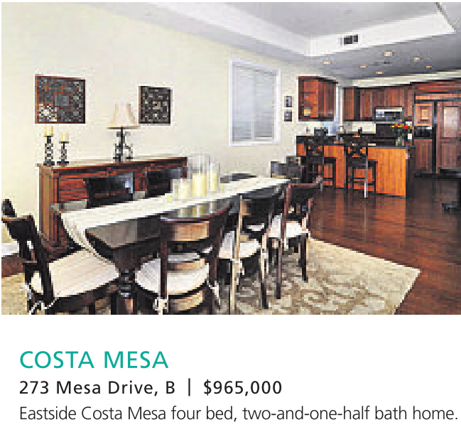 273 Mesa Drive, B | $965,000 Eastside Costa Mesa four bed, two-and-one-half bath home.