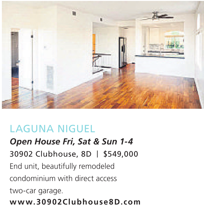 LAGUNA NIGUEL Open House Fri, Sat & Sun 1-4
