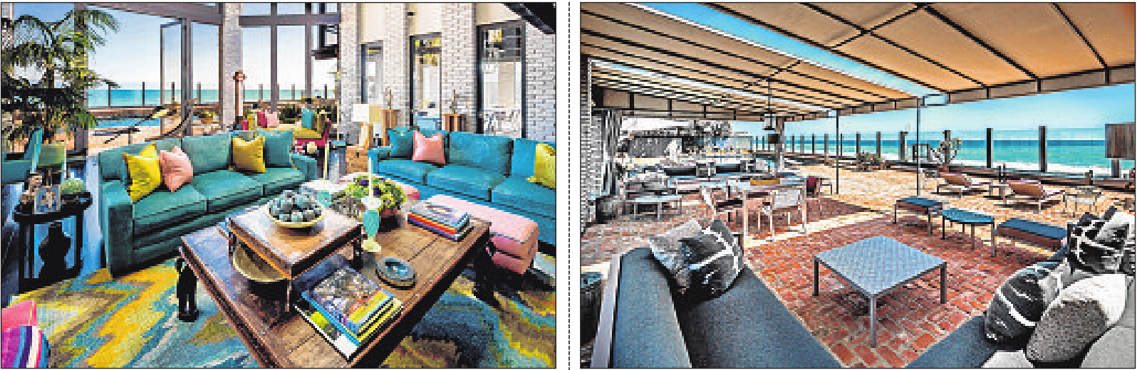 Built in the 1930s, the home opens to living spaces full of dark hardwood floors and exposed brickwork. Features include a two-story great room set under vaulted ceilings, a dining room with a fireplace and a lofted office. In the master suite, among the home’s five bedrooms and six bathrooms, walls of windows center on the ocean.