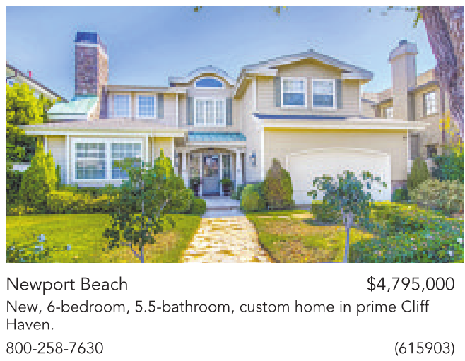 Newport Beach $4,795,000 New, 6-bedroom, 5.5-bathroom, custom home in prime Cliff Haven.