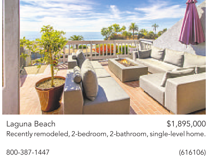 Laguna Beach $1,895,000 Recently remodeled, 2-bedroom, 2-bathroom, single-level home.
