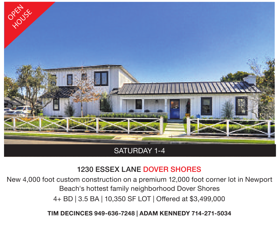 1230 ESSEX LANE DOVER SHORES New 4,000 foot custom construction on a premium 12,000 foot corner lot in Newport Beach's hottest family neighborhood Dover Shores