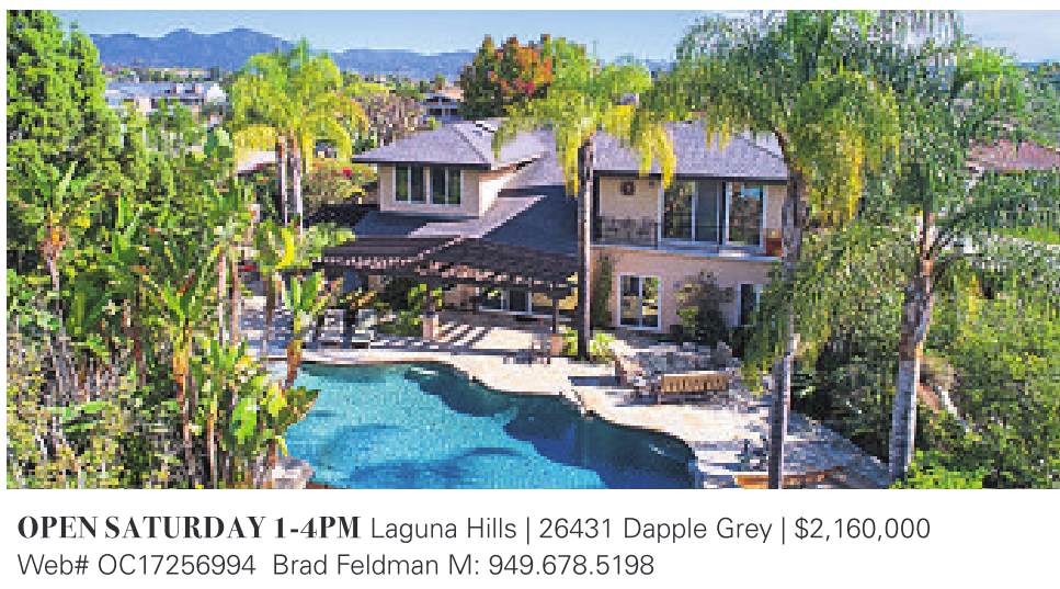 OPEN SATURDAY 1-4PM Laguna Hills | 26431 Dapple Grey | $2,160,000 Web# OC17256994 Brad Feldman M: 949.678.5198