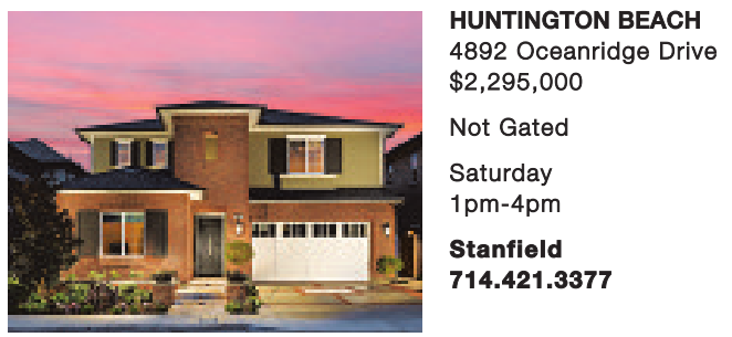 HUNTINGTON BEACH 4892 Oceanridge Drive $2,295,000 Not Gated Saturday 1pm-4pm Stanfield 714.421.3377