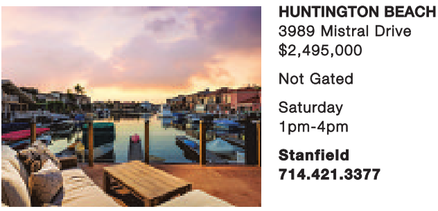 HUNTINGTON BEACH 3989 Mistral Drive $2,495,000 Not Gated Saturday 1pm-4pm Stanfield 714.421.3377