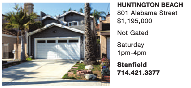 HUNTINGTON BEACH 801 Alabama Street $1,195,000 Not Gated Saturday 1pm-4pm Stanfield 714.421.3377