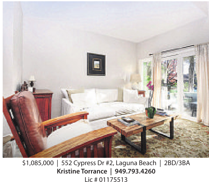 $1,085,000 | 552 Cypress Dr #2, Laguna Beach | 2BD/3BA Kristine Torrance | 949.793.4260 Lic #01175513