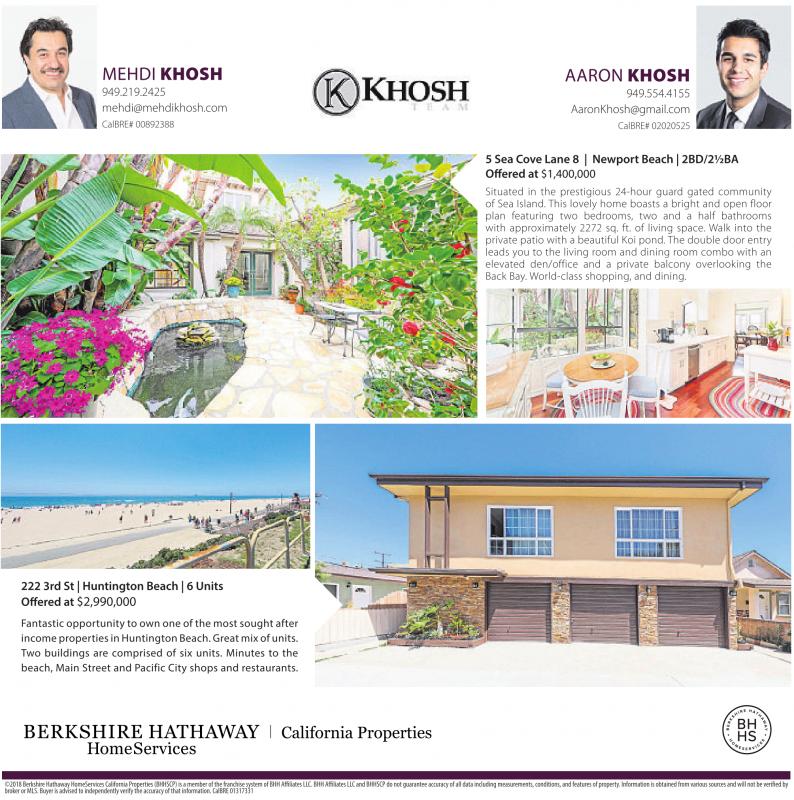 ©2018BerkshireHathawayHomeServicesCaliforniaProperties(BHHSCP)isamemberofthefranchisesystemofBHHAffiliatesLLC.BHHAffiliatesLLCandBHHSCPdonotguaranteeaccuracyofalldataincludingmeasurements,conditions,andfeaturesofproperty.Informationisobtainedfromvarioussourcesandwillnotbeverifiedby y broker or MLS. Buyer isadvised to independentlyverifytheaccuracyofthat information. CalBRE 01317331