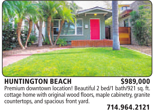 HUNTINGTON BEACH $989,000 Premium downtown location! Beautiful 2bed/1 bath/921 sq. ft. cottage home with original wood floors,maple cabinetry,granite countertops,and spacious front yard.