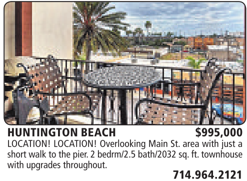 HUNTINGTON BEACH $995,000 LOCATION! LOCATION! Overlooking Main St. area with just a short walk to the pier.2bedrm/2.5 bath/2032 sq. ft. townhouse with upgrades throughout.