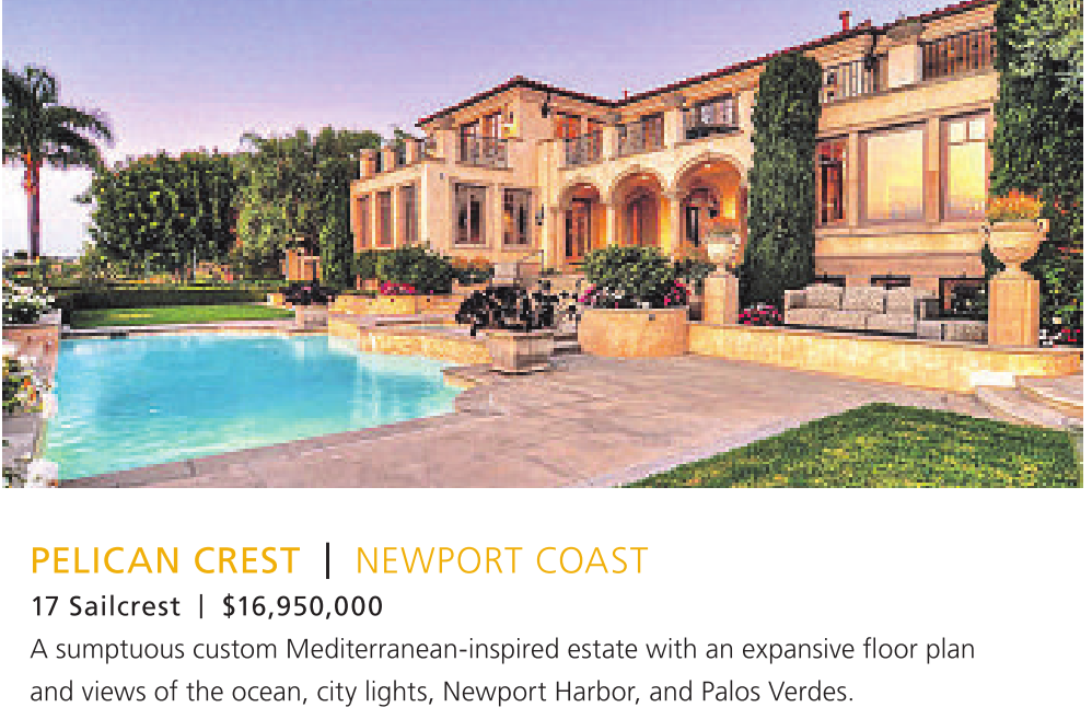 and views of the ocean, city lights, Newport Harbor, and Palos Verdes.