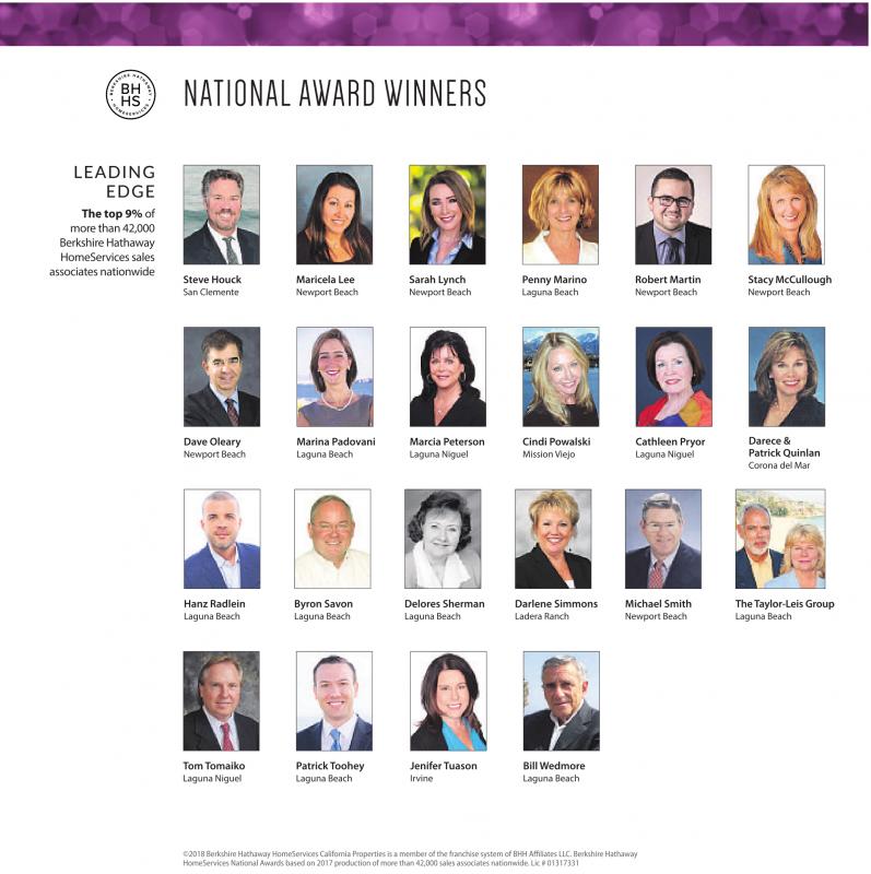 The top 9% of morethan 42,000 BerkshireHathaway HomeServices sales associates nationwide
