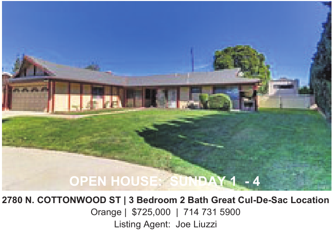 2780 N.COTTONWOOD ST|3Bedroom 2Bath Great Cul-De-Sac Location Orange | $725,000 | 714 731 5900 Listing Agent: Joe Liuzzi