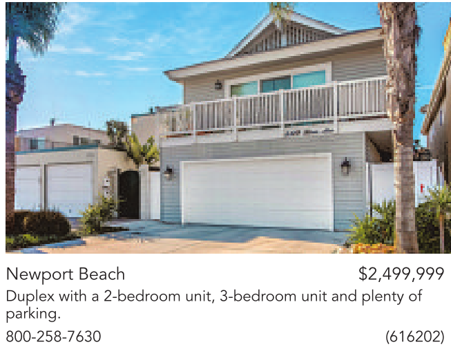 Newport Beach $2,499,999 Duplex with a 2-bedroom unit, 3-bedroom unit and plenty of parking.