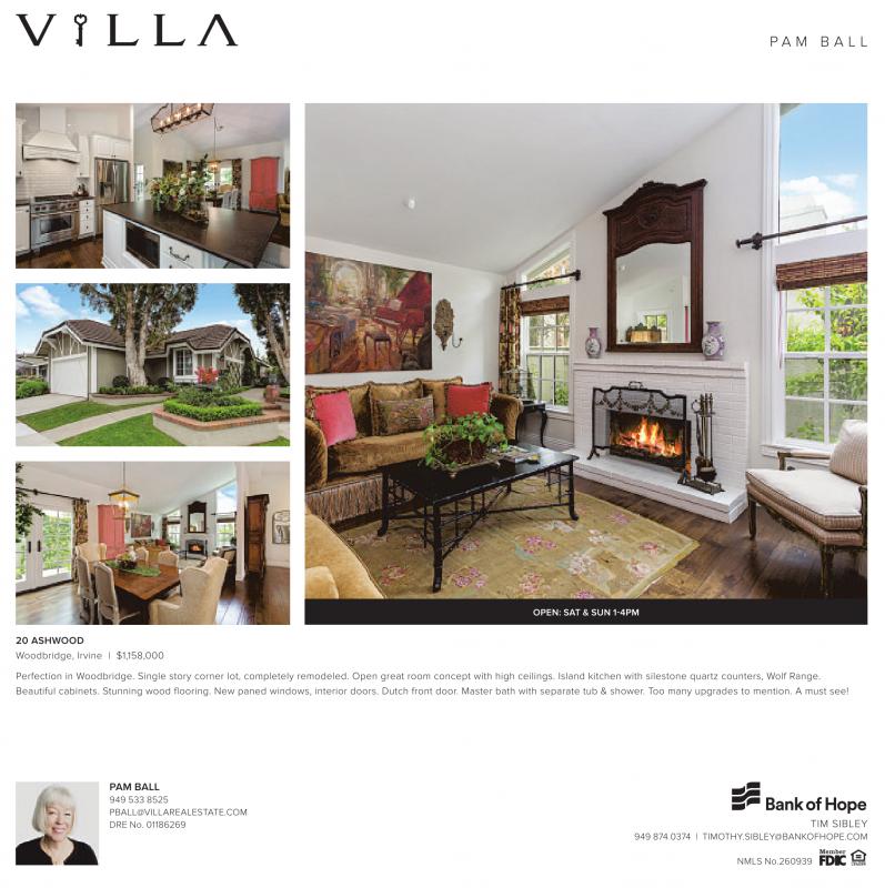 PAM BALL 949 533 8525 PBALL@VILLAREALESTATE.COM DRE No. 01186269