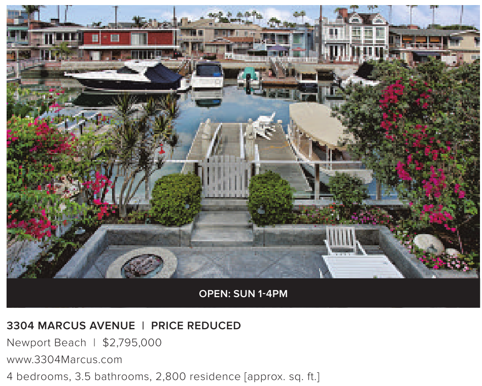 OPEN: SUN 1-4PM 3304 MARCUS AVENUE | PRICE REDUCED Newport Beach | $2,795,000 www.3304Marcus.com 4 bedrooms, 3.5 bathrooms, 2,800 residence [approx. sq. ft.] See also
