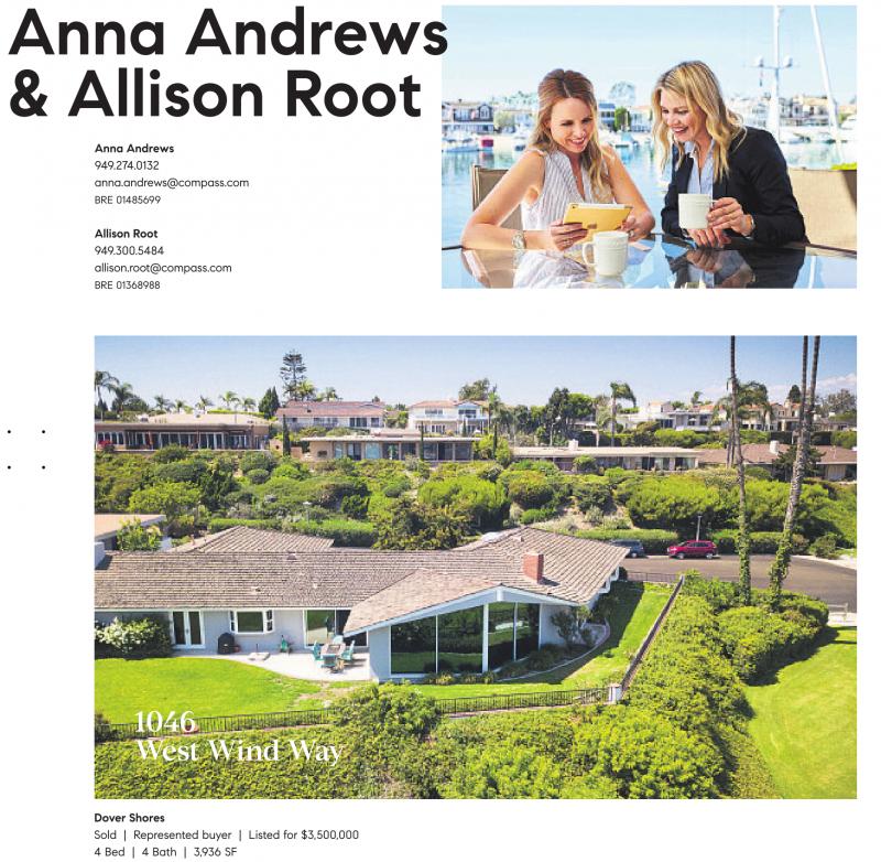 Anna Andrews 949.274.0132 anna.andrews@compass.com BRE 01485699