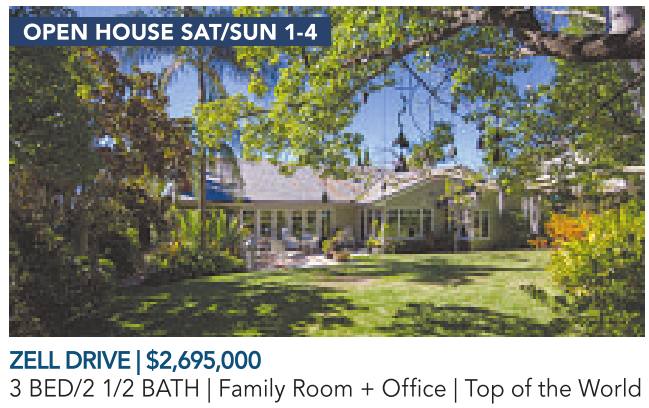 ZELLDRIVE|$2,695,000 3 BED/2 1/2 BATH | Family Room + Office | Top of the World