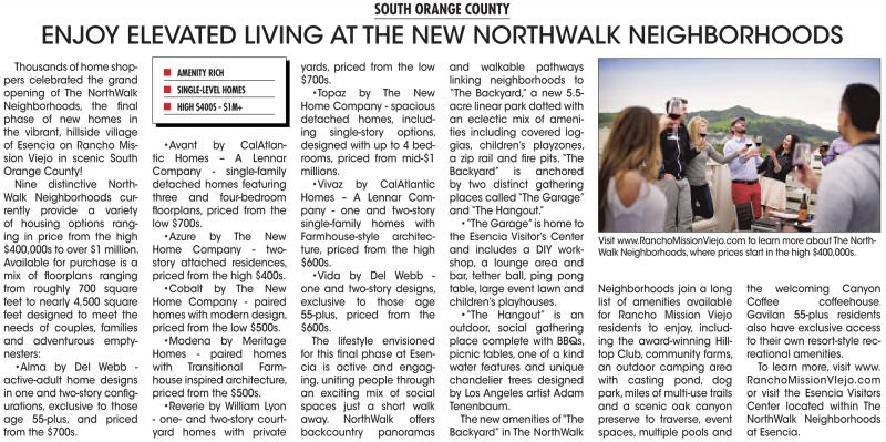RanchoMissionVIejo.com or visit the Esencia Visitors Center located within The NorthWalk Neighborhoods at Esencia.
