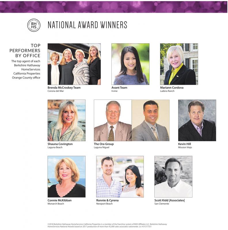 The top agent of each Berkshire Hathaway HomeServices California Properties Orange County office
