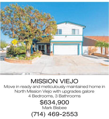 North Mission Viejo with upgrades galore 4Bedrooms, 3Bathrooms $634,900 Mark Bisbee